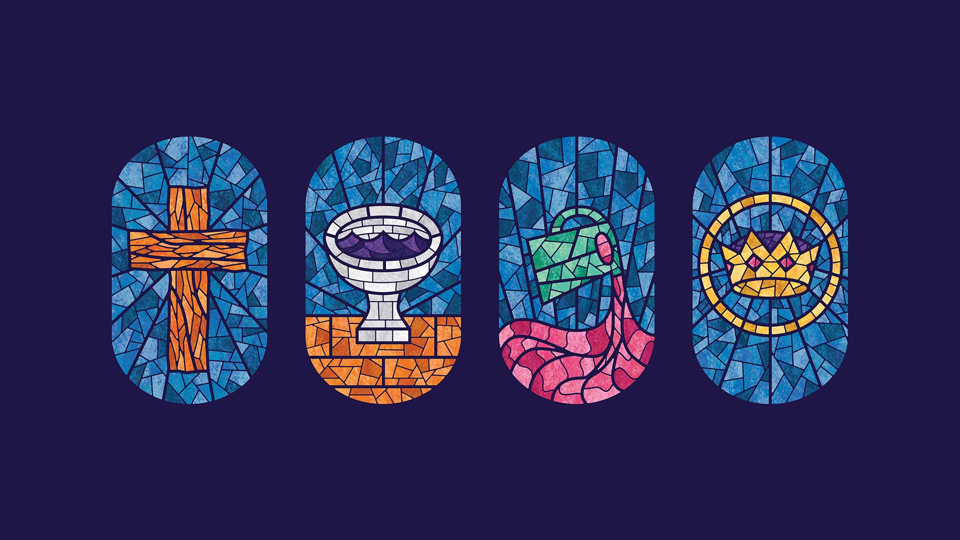 This symbol represents a pitcher containing oil to anoint the sick for healing that comes through obedience to God’s Word: “And the prayer offered in faith will make the sick person well; the Lord will raise him up” (James 5:15).